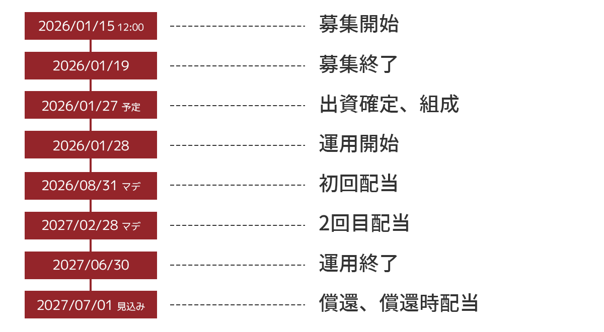 ※契約上は償還期日を運用終了から翌々月末までとしていますが、過去ファンド同様に運用終了の翌日償還を予定しております。