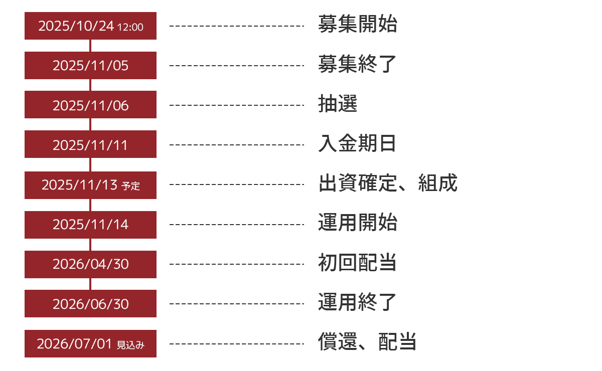 | 出資金振込期日 | 2025/11/11 契約前に事前入金は必要ありません。 |